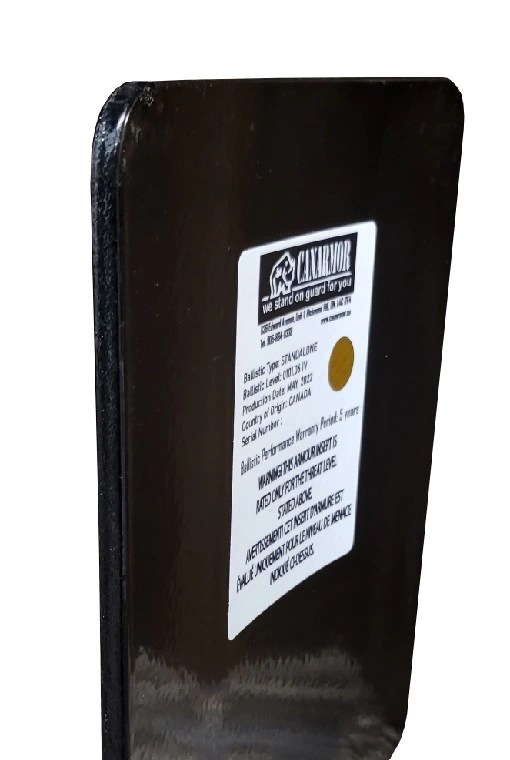 The AR500 NIJ III PU-COATED plate FS STA (10×12) is a single-piece shooter cut body armor boasting NIJ III Plus Standalone certification, featuring a full-size design measuring 10 inches by 12 inches, drop-resistant and non-fragile construction, a 9 mm thickness with a polyurethane rubberized base coating for anti-spall resistance, AR500 steel ballistic materials, stand-alone and multi-hit capability, independent testing exceeding NIJ standards, and proudly manufactured in Canada.