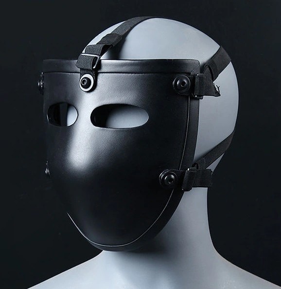 The Ballistic Face Mask provides total front facial protection against 0101.06 NIJ Standard, Level IIIA, and lesser ballistic threats.\