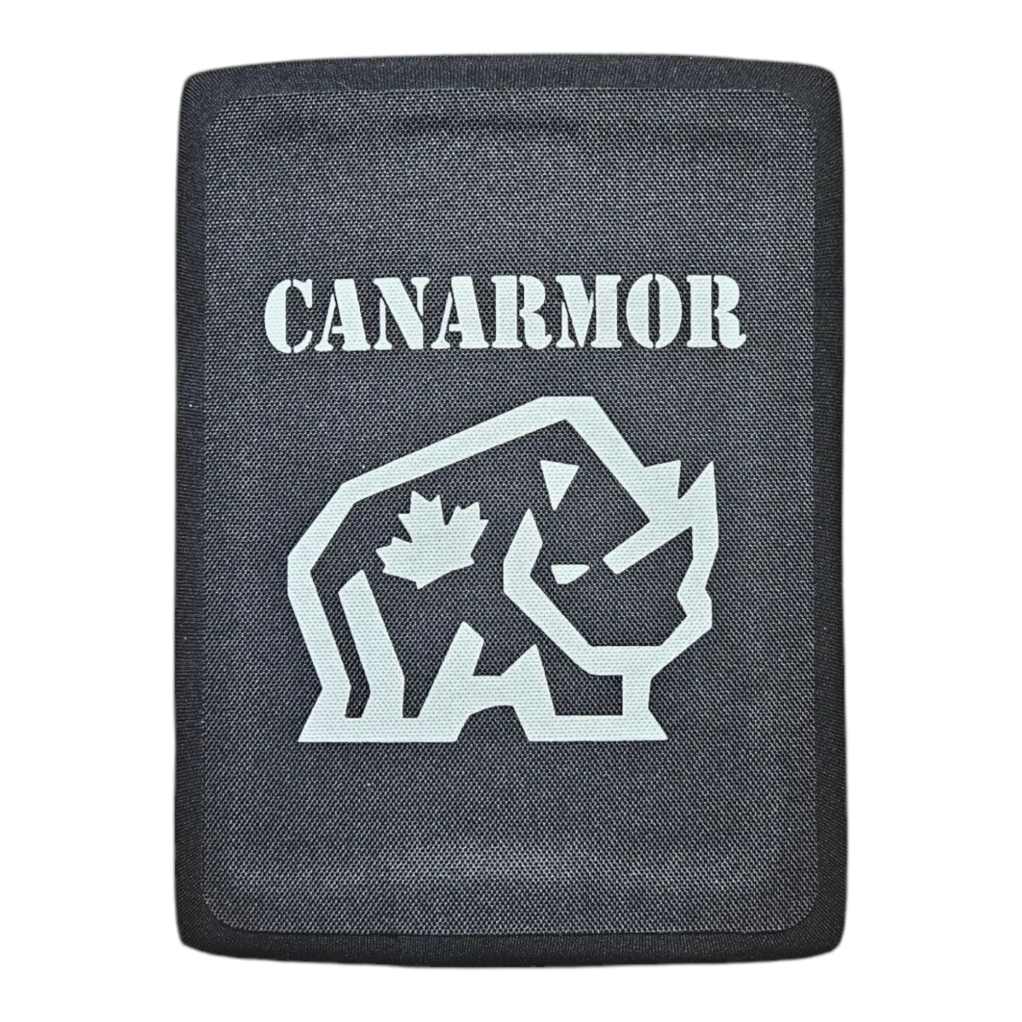 This SiC vertical NIJ IV body armor trauma panel, compliant with the NIJ IV 0101.06 standard and proudly manufactured in Canada, offers standalone protection with multi-strike capability, featuring a 1-inch thickness and a vertical, rectangular shape, crafted from Silicon Carbide (SiC) and Ballistic Fiber layering, weighing 1 kg (2.2 lbs.) and measuring 6 X 8 X 1 inches (150 X 200 X 30mm), ideal for side body armor applications.